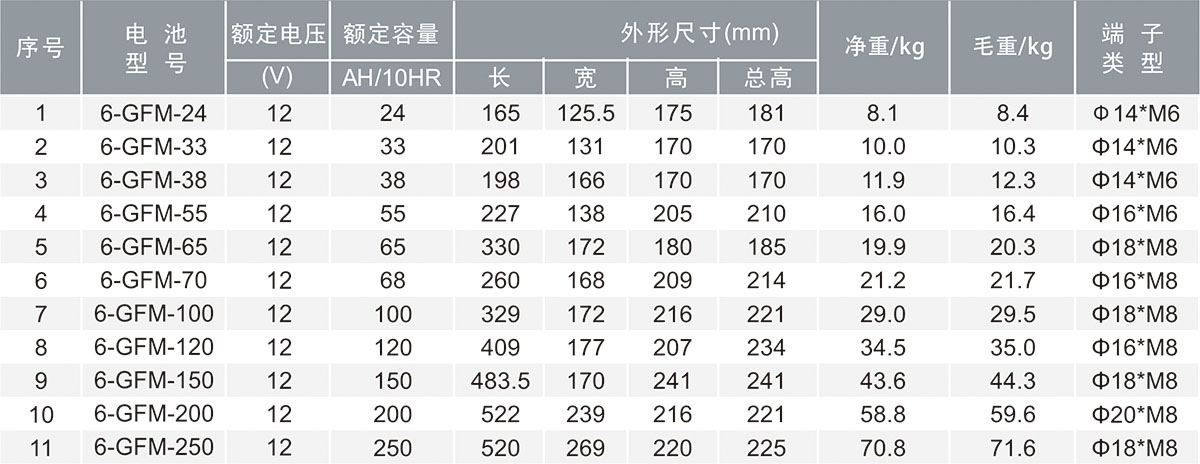 產品系列:容量范圍:33AH-250AH 電壓等級:12v